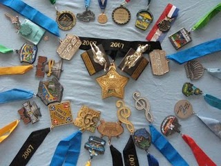 Here is a photo of my personal running bling! 9 marathons and 8 half marathons in 14 months!